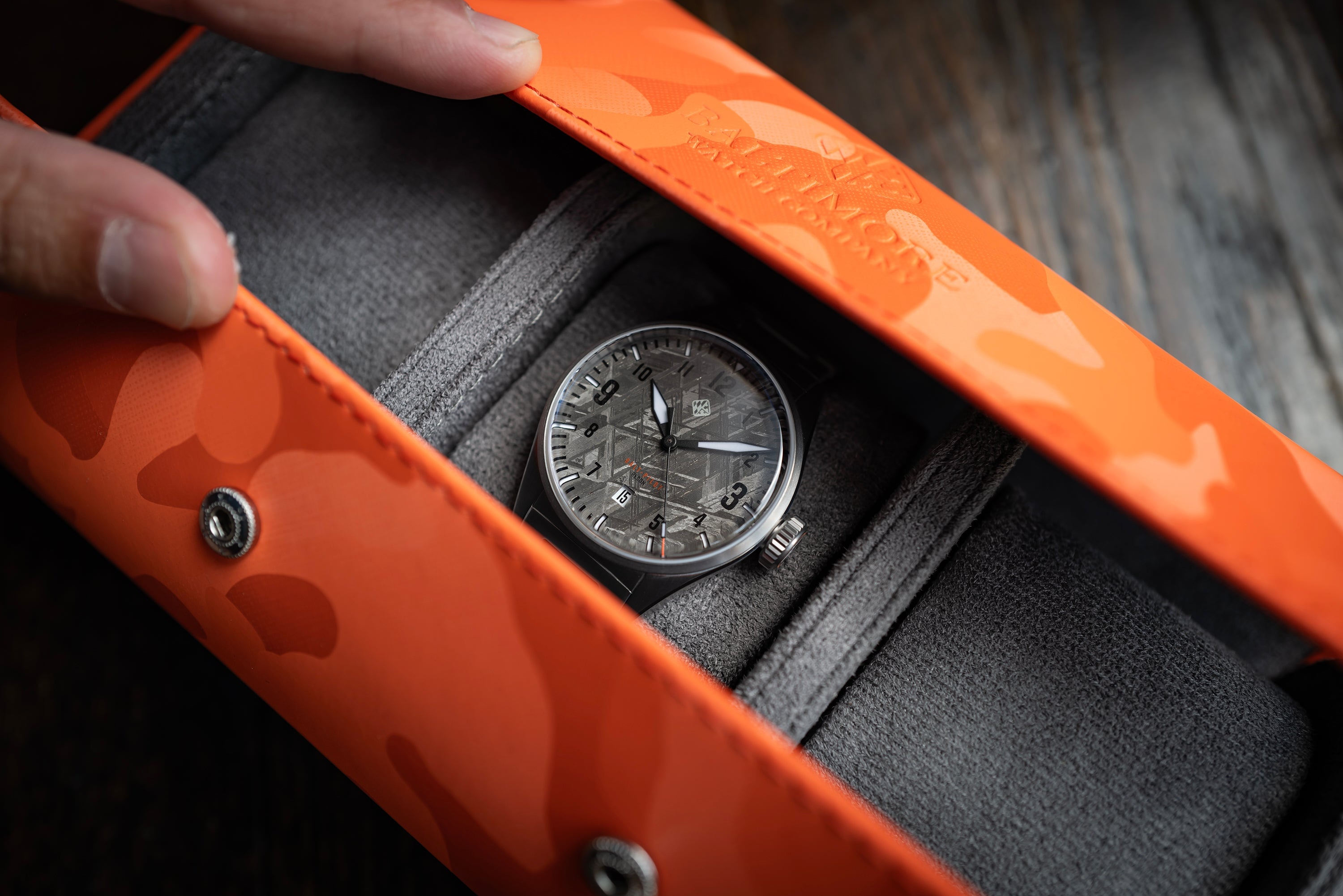 The Meteorite dial is sourced from Sweden, from the Muonionalusta Meteorite rock, that’s a million years old and was found just 100 years ago on earth.