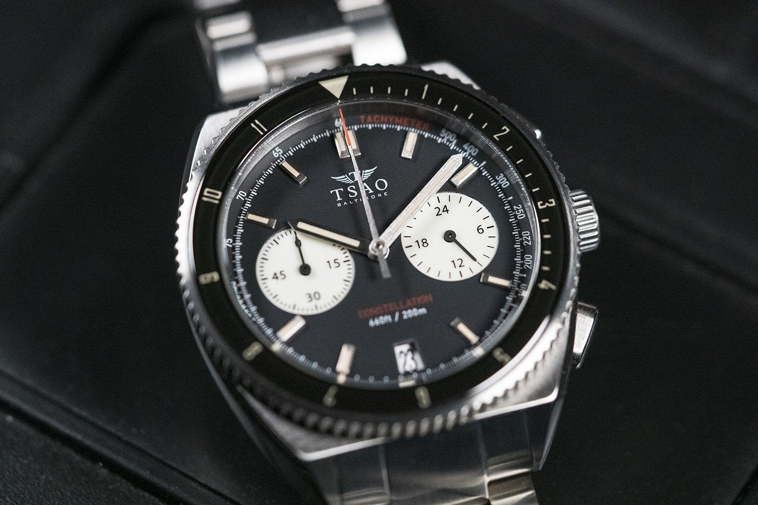 The Constellation Chrono-Diver is a stunning and reliable grab and go timepiece. It's 200m water resistance, stainless steel case, incredibly accurate meca-quartz movement, and swiss lume is the perfect companion for any adventure.
