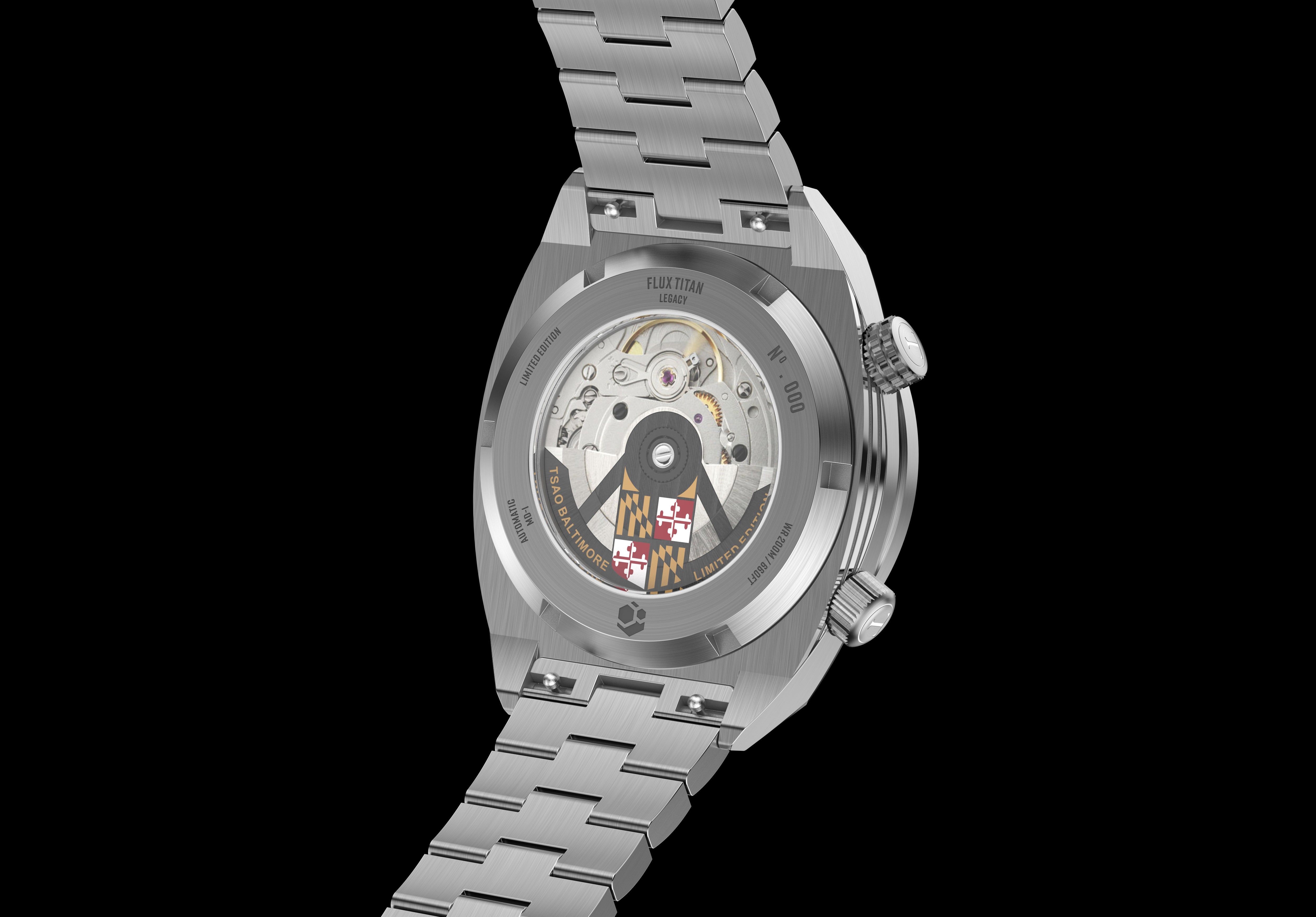 The Legacy was built and designed to be worthy of being passed on to the next generation. This would combine our passion for quality and watchmaking with the indomitable spirit of the city that we are incredibly proud to be a part of. The limited edition Tsao Baltimore Legacy is our heirloom-worthy timepiece, integrating an aggressive super compressor design with subtle and loving visual tributes to the historic city of Baltimore.