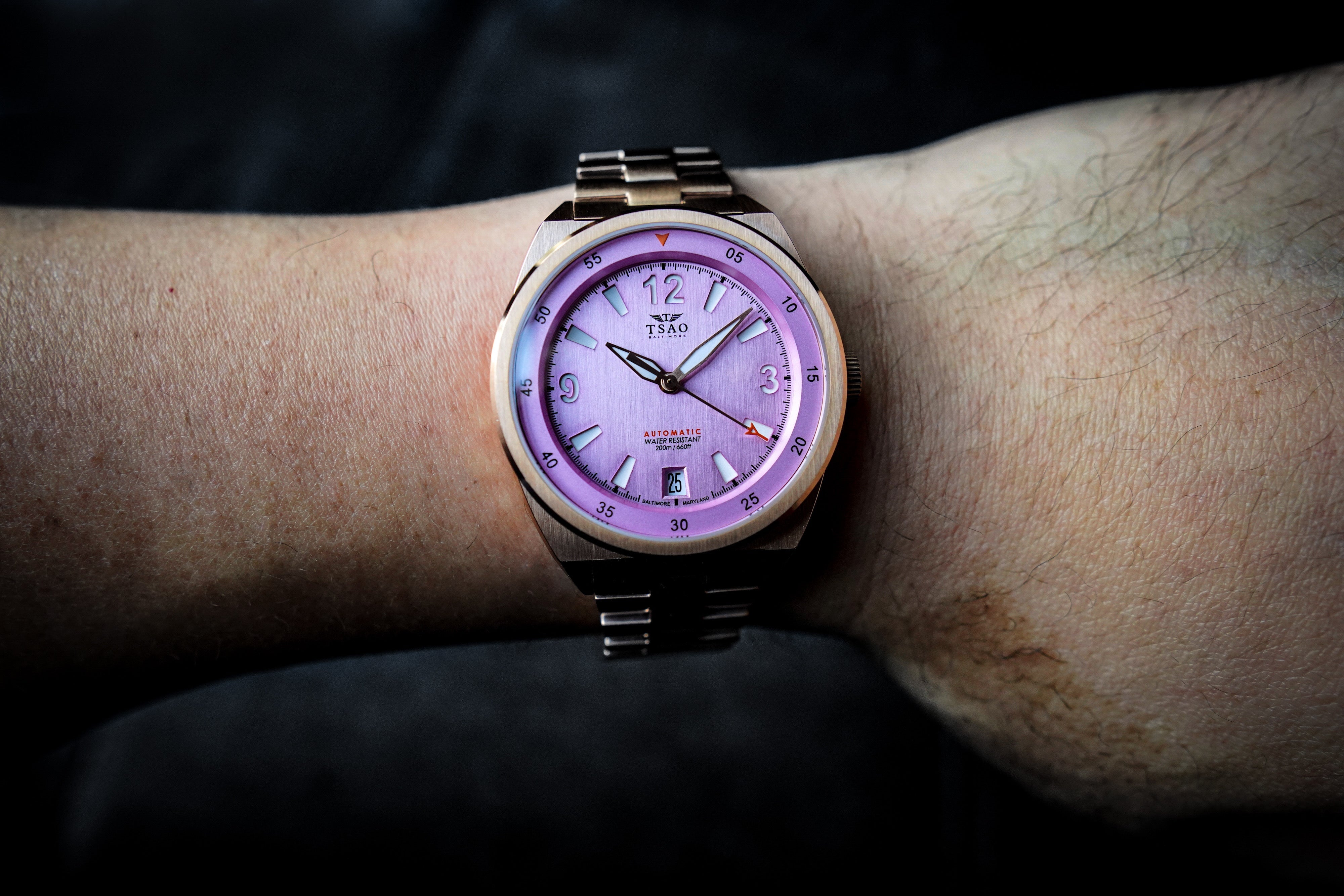 The Legacy is offered in several limited colorways and dial options inspired by the history and feel of Baltimore itself. Each dial option combines deep cutouts for the mix of lumed Arabic numerals and indices, along with classic pilot watch style hands and a heavily textured dial finish.