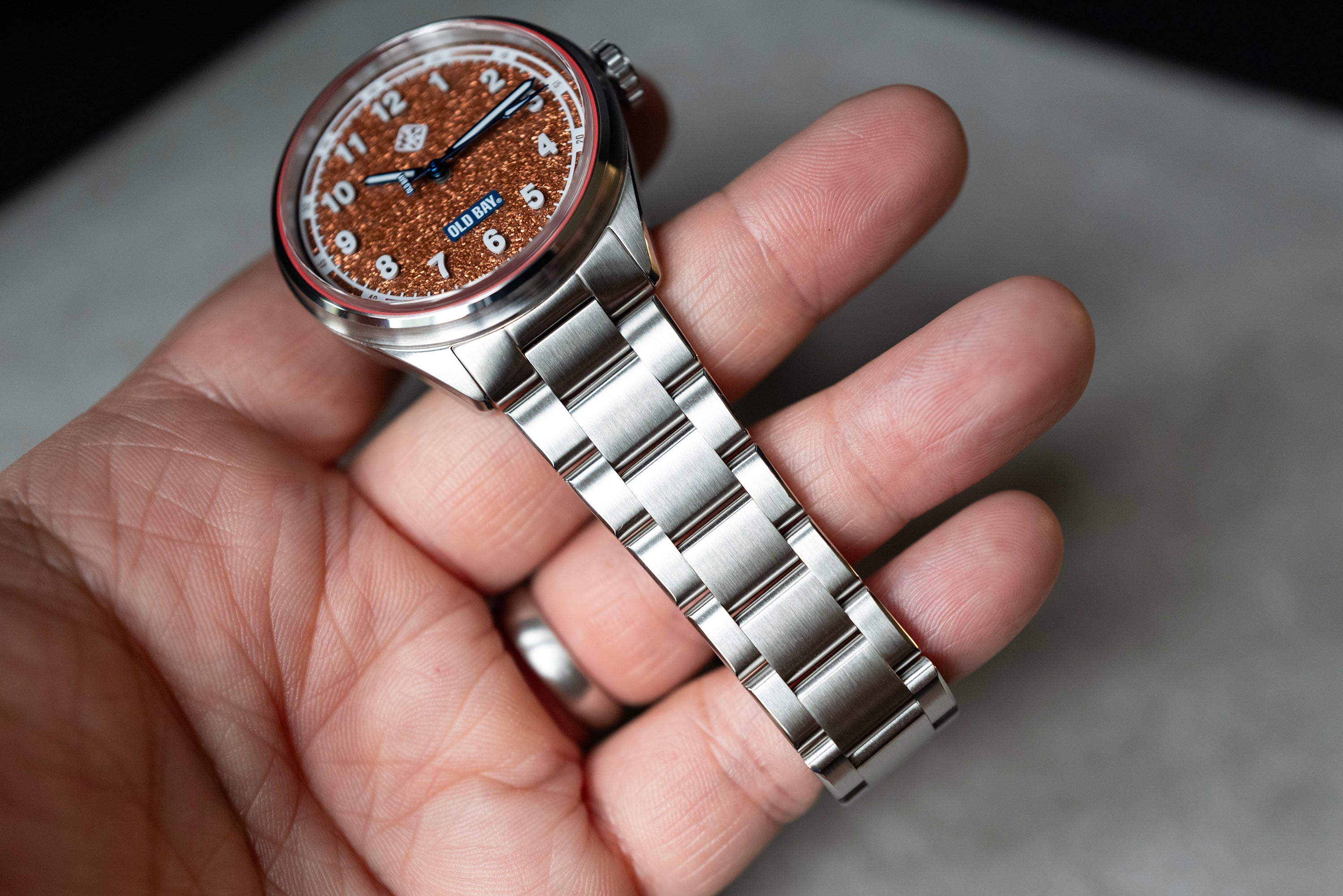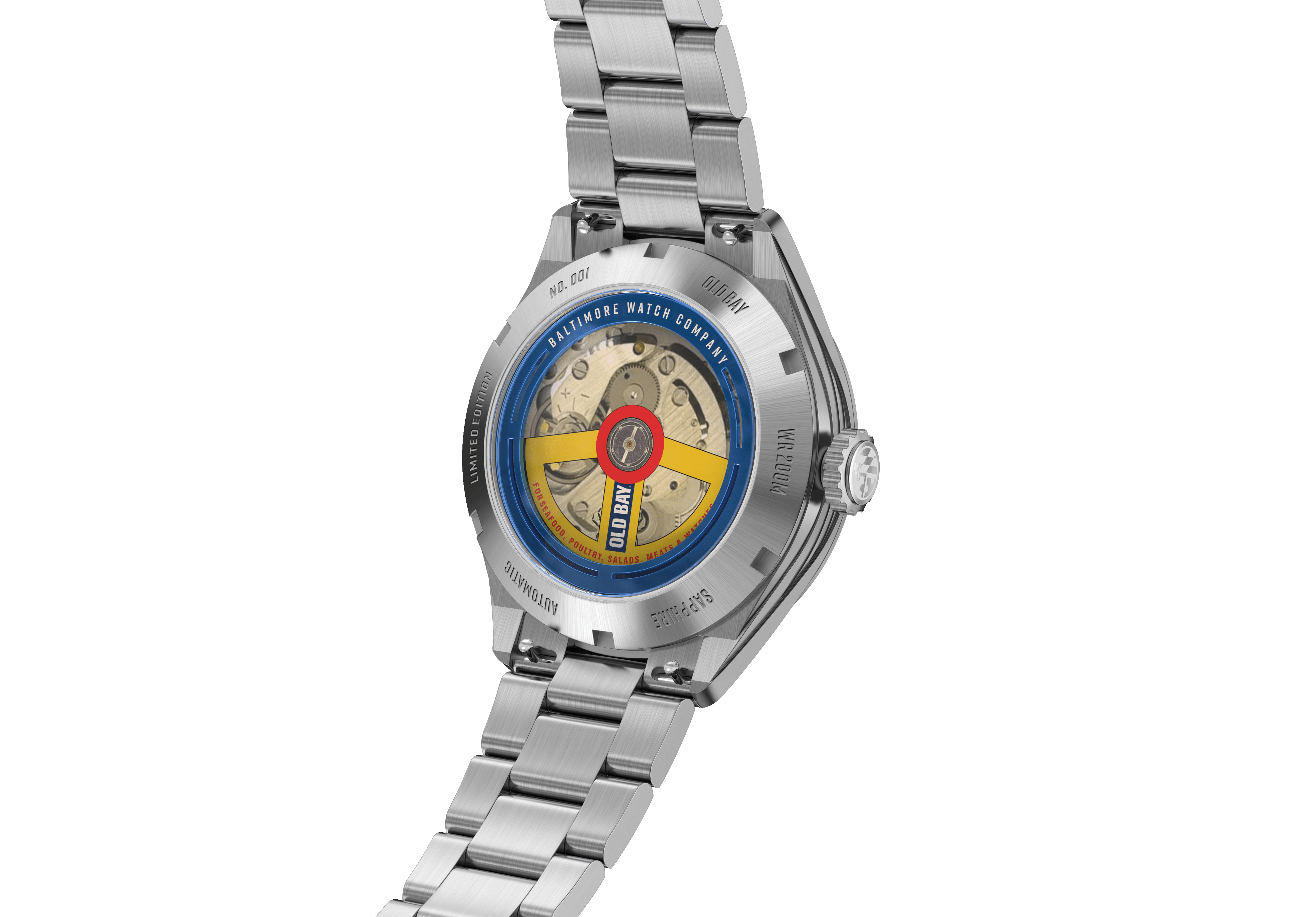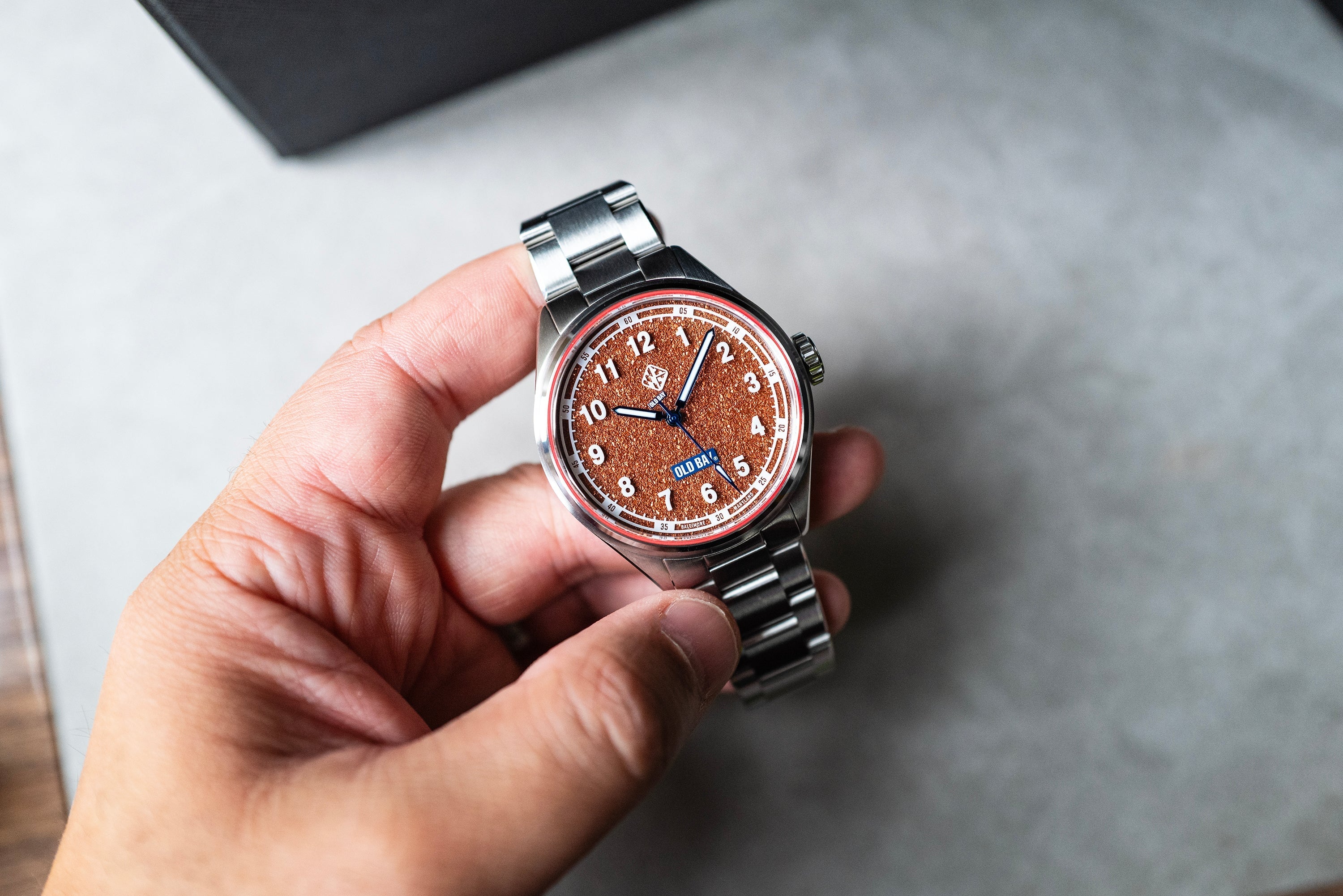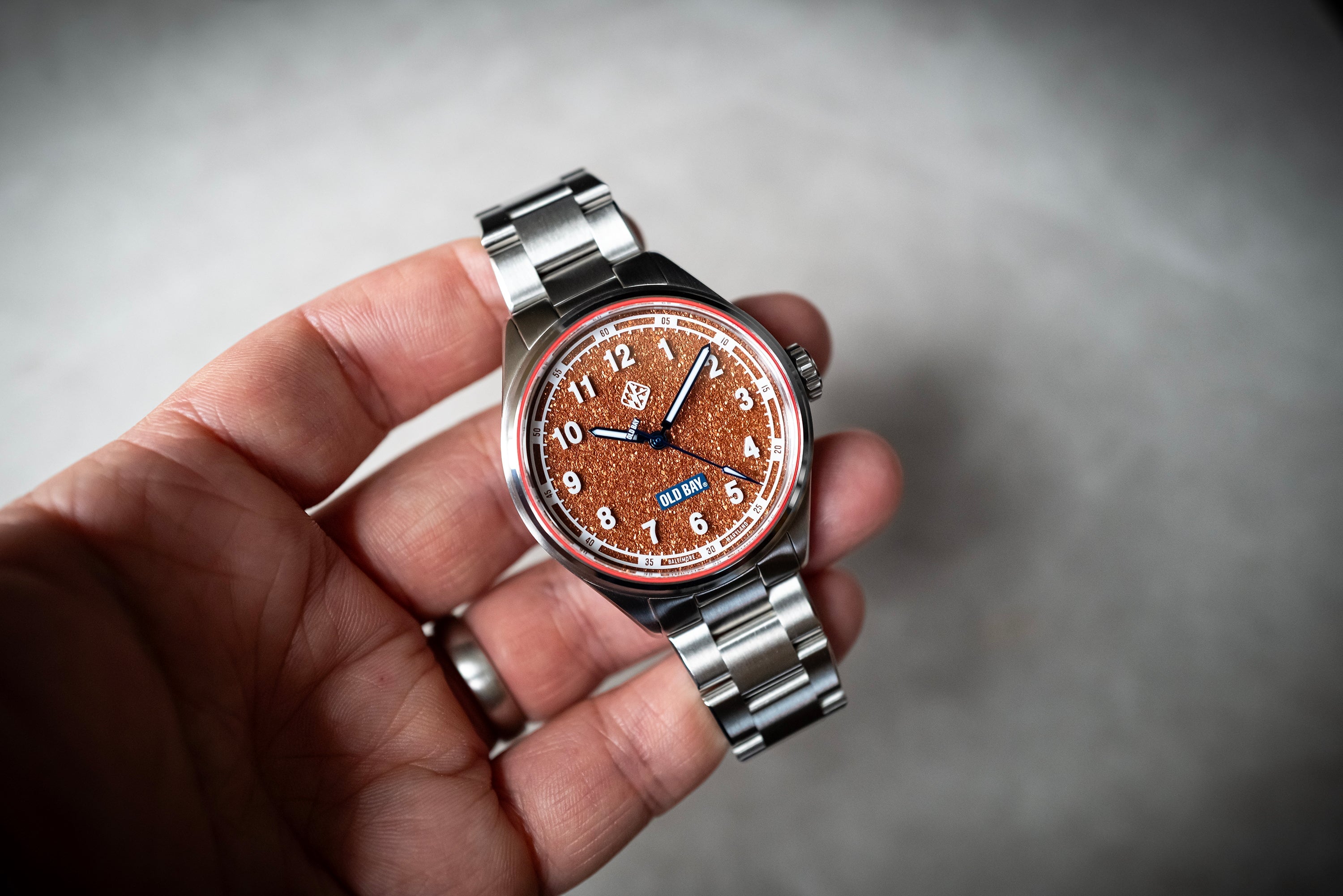 Old Bay® is not only iconic to Baltimore but to all of Maryland. We created this timepiece to give everyone an opportunity to wear a piece of Marylands story, but also enjoy the little things. Not everything has to be serious, but boy does this look seriously delicious! From the mouth watering Old Bay Spice texture on the dial to the sapphire glass hovering to create a unique floating effect with the hour markings. Everything designed on this watch is uniquely Maryland, and we're absolutey excited to see it on your wrist... Especially when you're eating some Maryland Crabs Hon!